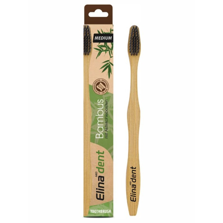 Periuta de dinti din bambus cu peri de carbon, medium, Elina Med, 1 bucata